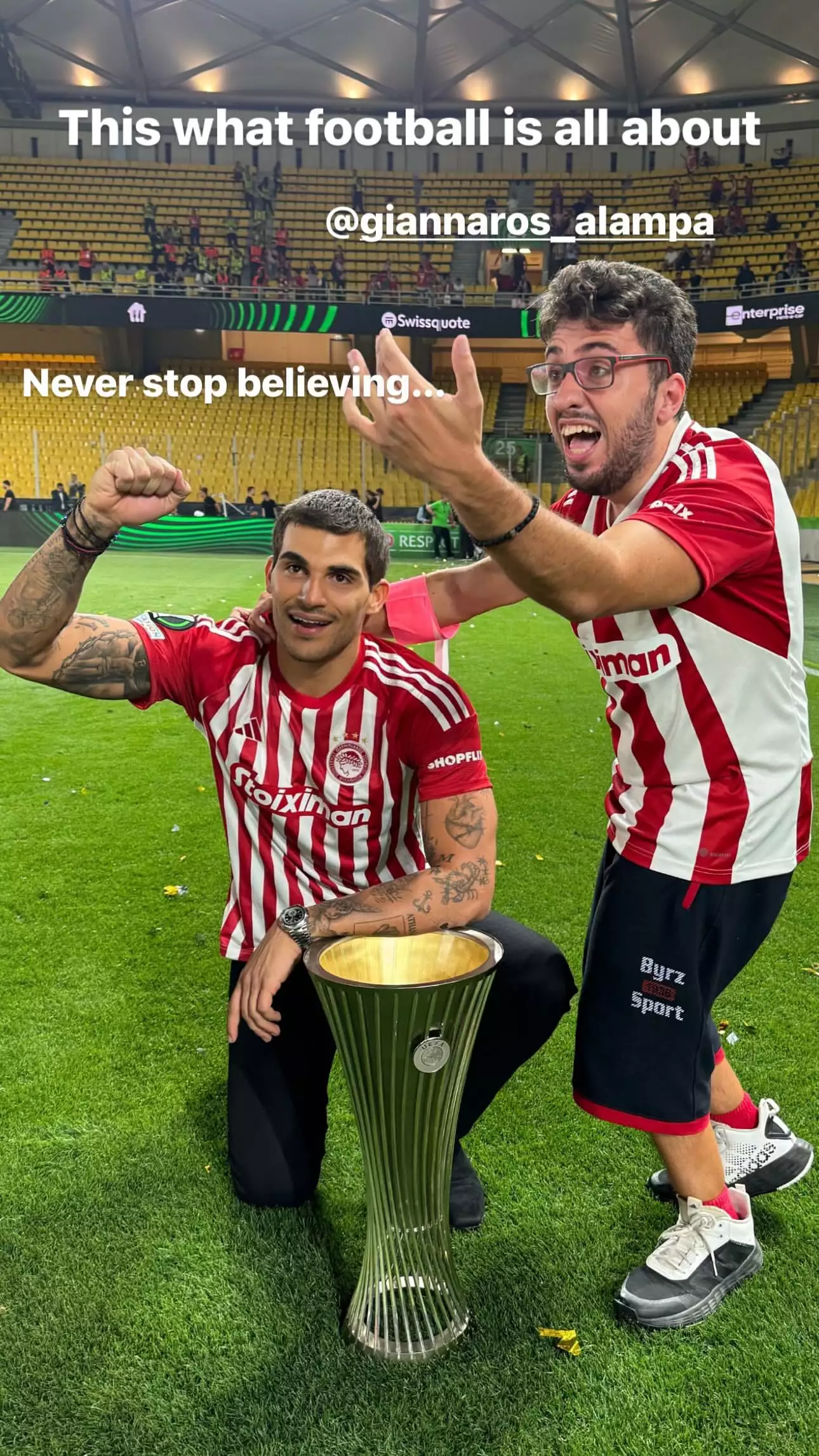 Με πτυχίο από το Κολλέγιο Ψυχικού και σπουδές στη Μεγάλη Βρετανία, ο 25χρονος δεν κρύβει την αγάπη του για τα ταξίδια και τα αθλήματα. Με μια φωτογραφία που τον δείχνει συνοδευόμενος από τον πατέρα του, Βαγγέλη Μαρινάκη, και κρατώντας στα χέρια του το τρόπαιο, ο Μιλτιάδης Μαρινάκης εορτάζει την κατάκτηση του Conference League μετά τη νίκη του Ολυμπιακού με 1-0 εναντίον της Φιορεντίνας.