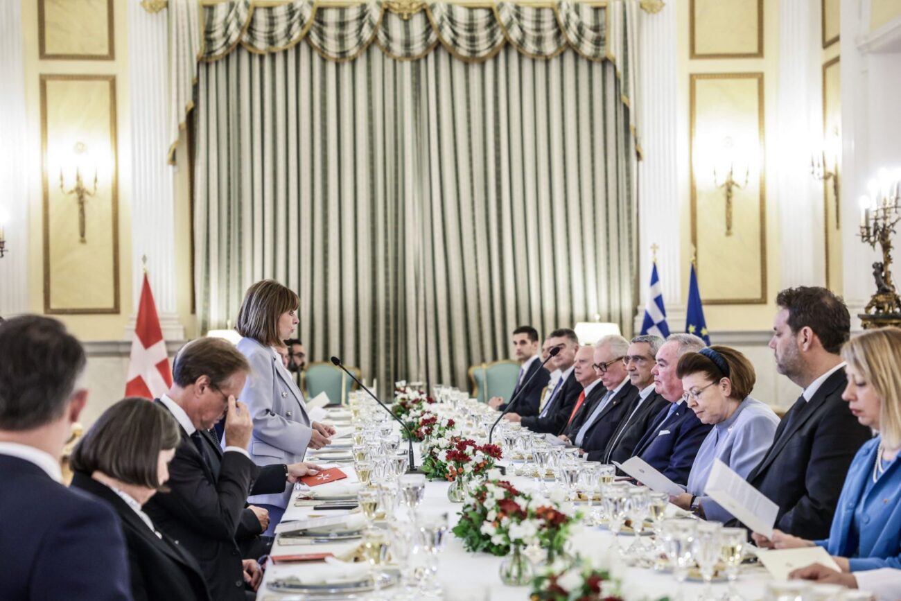 Προσφώνηση της ΠτΔ Κατερίνας Σακελλαροπούλου προς τον Mεγάλο Μάγιστρο του Κυρίαρχου Στρατιωτικού Νοσοκομειακού Τάγματος του Αγίου Ιωάννη των Ιεροσολύμων, της Ρόδου και της Μάλτας Fra’ John Dunlap κατά το επίσημο γεύμα στο Προεδρικό Μέγαρο