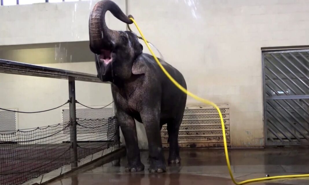 Οι ερευνητές έχουν μείνει έκπληκτοι από την ικανότητα ενός ασιατικού ελέφαντα να χρησιμοποιεί λάστιχο ποτίσματος για να κάνει ντους.