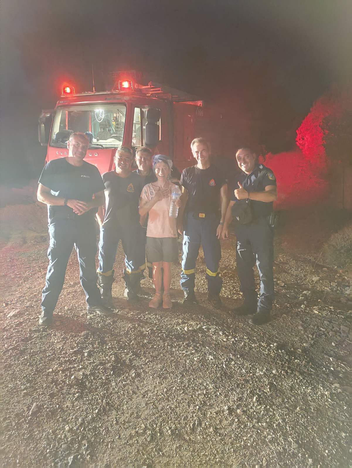 Παρά την ταλαιπωρία της και ενώ βρισκόταν σε διαρκή επικοινωνία με αστυνομικό του ΑΤ Νότιας Ρόδου, βρέθηκε σε καλή κατάσταση και αργότερα μεταφέρθηκε στην οικία  όπου διαμένει για το καλοκαίρι σώα κ αβλαβής.