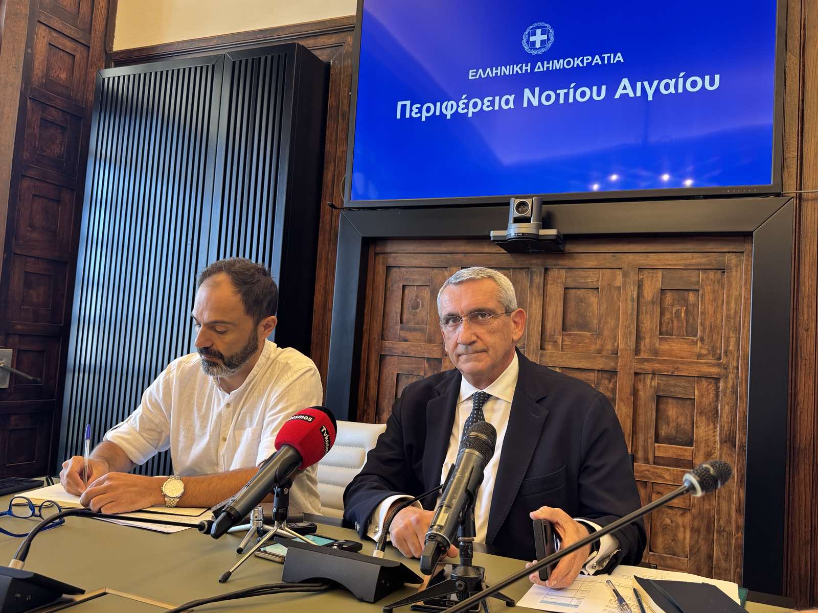 « Αν ήμουν παρών χθες στη σκέψη, δεν θα μπορούσα να συμφωνήσω με αυτό με κανένα τόπο. Δεν θα συμφωνούσα και δεν θα μπορούσα να συμφωνήσω. Γιατί η πιθανότερη εξέλιξη μιας τέτοιας προσφυγής θα είναι η ακύρωση του μέτρου. Ποιος θα το πει αυτό τα υπόλοιπα νησιά; Δεν μπορώ να έχω πάρει μέρος σε ένα τέτοιο έγκλημα, απέναντι σε άλλα νησιά. Τα άλλα νησιά τι είναι; Δεν υπάρχουν; Τι είναι, εργαλείο εκβιασμού; Δεν μπορώ να έχω αυτή τη στάση απέναντι σε αυτό το ζήτημα. Δεν επιτρέπω. Επιτρέψτε μου να πω, αυτά επικίνδυνα πράγματα. Και ξαναγυρίζω στην ερώτηση. Αυτή είναι μια ενωτική σύσκεψη. Όταν το πρώτο το οποίο λες είναι ότι θα προσφύγεις στο Συμβουλίου της Επικρατείας. Και ακούστηκε μέσα στη σύσκεψη ότι λείπουν οι αναλογιστικές μελέτες. Αν το προβάλλεις αυτό δικαστικά, ότι ήρθε ένα μέτρο το οποίο είναι πρόχειρο, δεν είναι καλά τεκμηριωμένο και δεν συνοδεύεται από αναλογιστικές οικονομικές μελέτες, αν το δικαστήριο πάρει σοβαρά αυτούς τους ισχυρισμούς σου, κινδυνεύει να πέσει το μέτρο. Να ακυρωθεί. Είναι λάθος για μένα, κατά την προσωπική μου άποψη. Αν ήμουνα μέσα εκεί, δεν θα μπορούσα να συμφωνήσω. Ευτυχώς που δεν ήμουνα και δεν χρειάστηκε για τους λόγους που είπα. Και δεν χρειάστηκε να ζήσω αυτό το πράγμα. Όχι, είναι επικίνδυνες απόψεις αυτές» ανέφερε ο Περιφερειάρχης.
