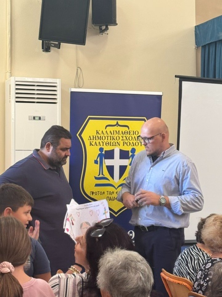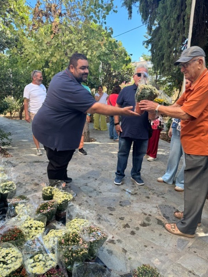Στην συνέχεια ακολούθησε επίσκεψη στον Σύλλογο Ηλικιωμένων Καλυθιών, όπου το 1ο Δημοτικό Σχολείο Καλυθιών παρέδωσε ανθοφόρα φυτά, προσφορά του Περιφερειακού Φυτωρίου Νοτίου Αιγαίου, ενισχύοντας τη σύνδεση των γενεών μέσα από την πράξη και το συμβολισμό της προσφοράς.