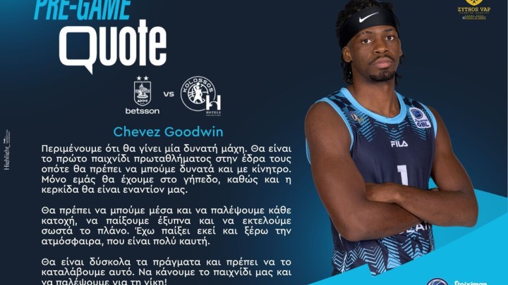 Την άποψή του για την εκτός έδρας αναμέτρηση του Κολοσσού H Hotels Collection απέναντι στον Άρη Betsson (11/10, 16:00), για τη 2η αγωνιστική της Stoiximan GBL, μοιράστηκε ο Τσέβεζ Γκούντγουιν.