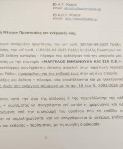 Το έγγραφο της κτηματικής υπηρεσίας Δωδεκανήσου κοινοποιήθηκε στις αρμόδιες υπηρεσίες και στον ιδιοκτήτη του καταστήματος με την επωνυμία “Μαργέλος Εμμανουήλ και ΣΙΑ ΟΕ”