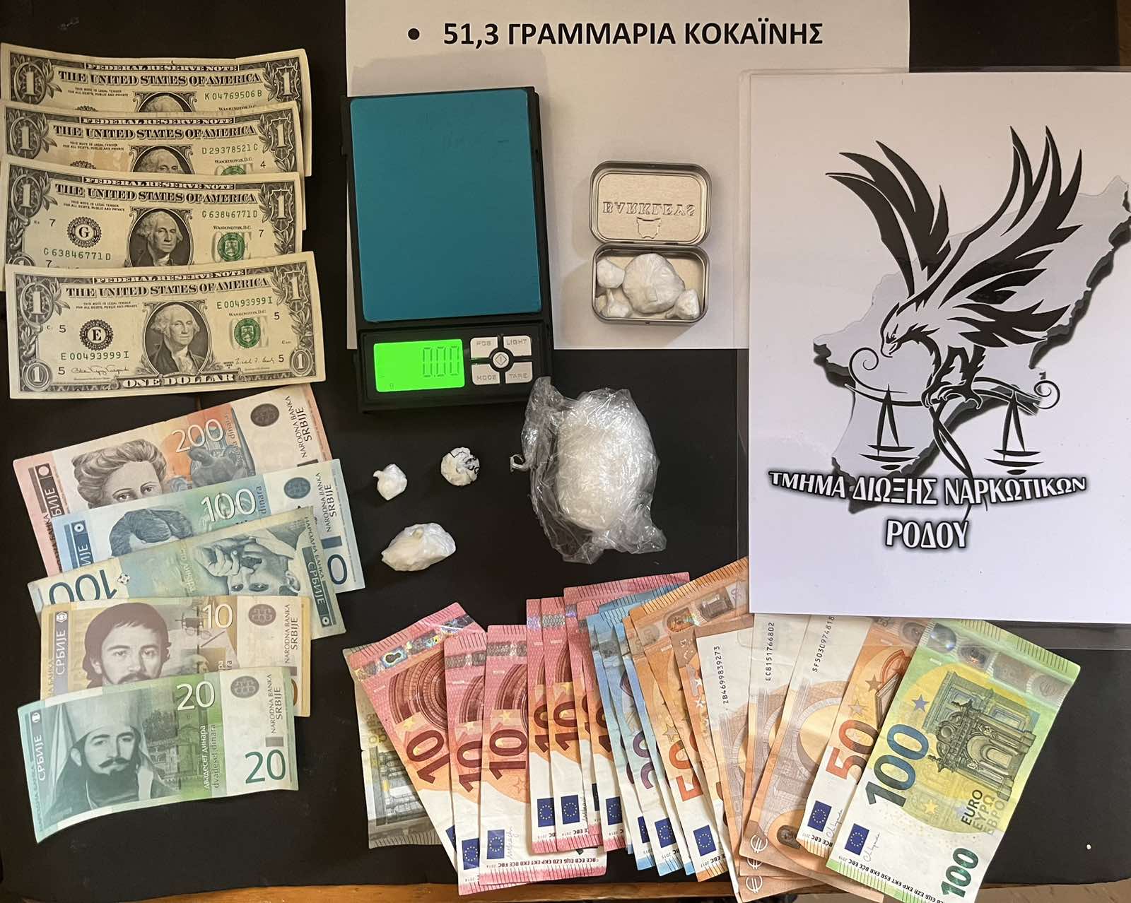Κατασχέθηκαν 51 γραμμάρια κοκαΐνης, 615 ευρώ κ.α.