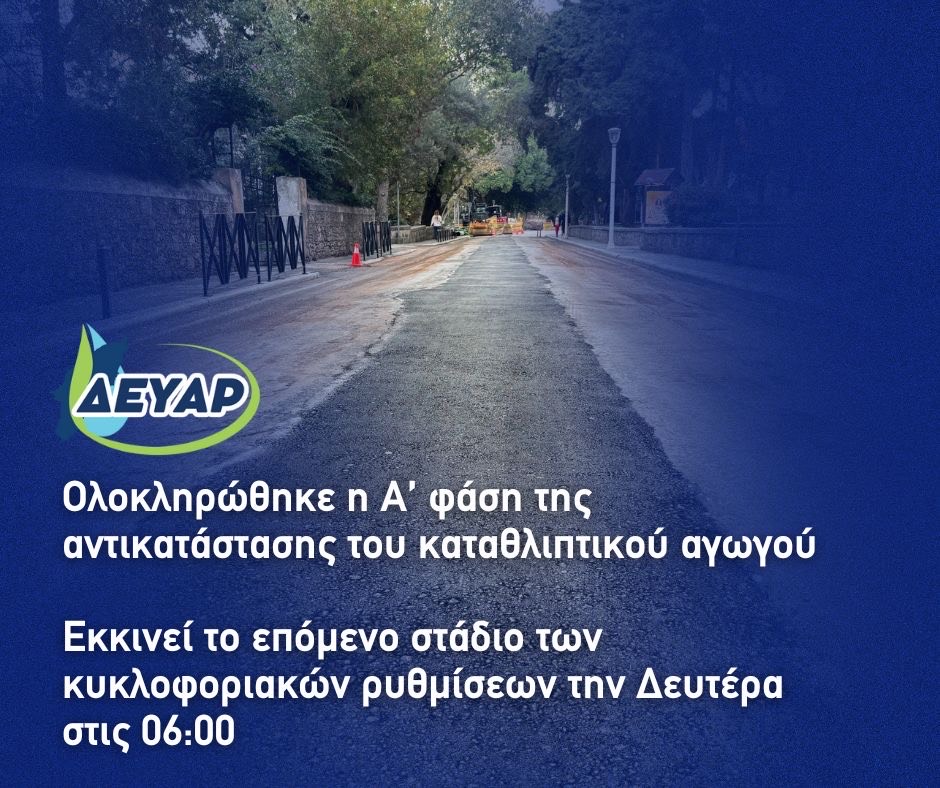 Η ΔΕΥΑΡ ενημερώνει ότι ολοκληρώθηκε ήδη η Α’φάση του έργου,