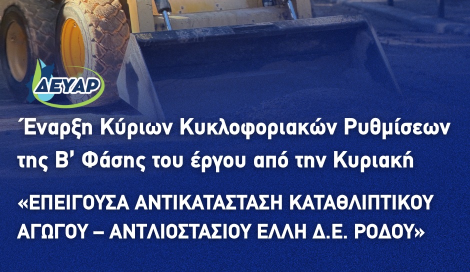 Η ΔΕΥΑΡ ενημερώνει ότι, μετά την επιτυχή ολοκλήρωση της Α’ Φάσης του έργου ολοκληρώνεται και το