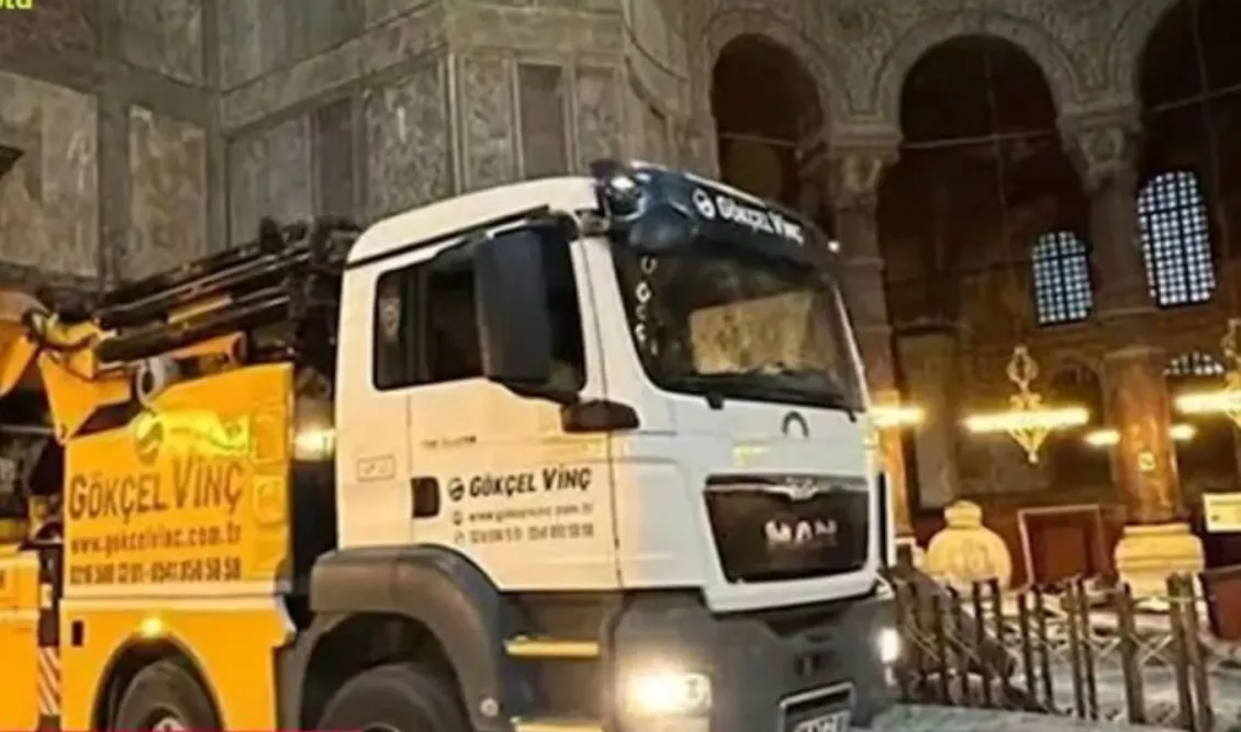 Σάλος επικρατεί στην Τουρκία για την εκτεταμένη αναστήλωση της Αγίας Σοφίας, του μεγαλύτερου μνημείου της χριστιανοσύνης. Τεράστια φορτηγά βάρους πολλών τόνων βρίσκονται μέσα στον ναό, με αποτέλεσμα ο ιερός χώρος να μοιάζει με πολύβουο εργοτάξιο.