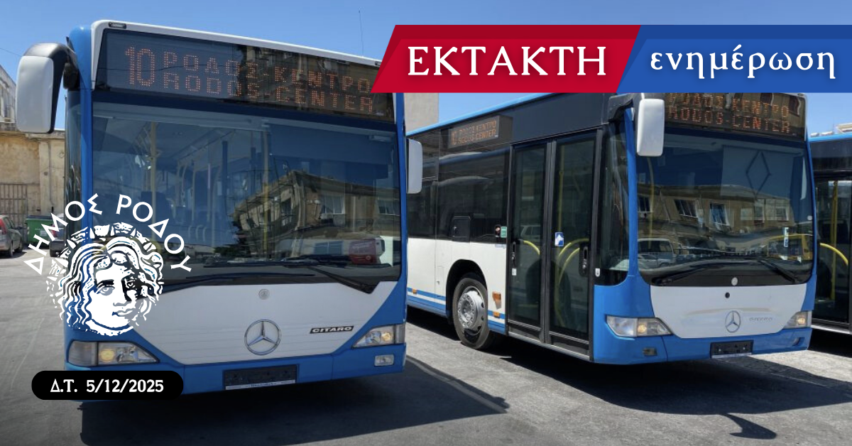 Η Διεύθυνση Συγκοινωνίας Δήμου Ρόδου ενημερώνει ότι λόγω των ακραίων