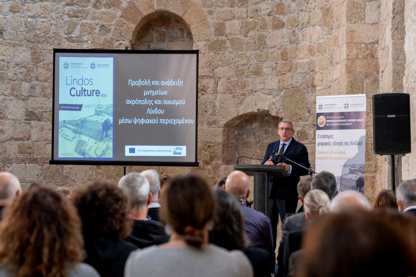 Ειδικότερα, το ΥΠΠΟ, η Εφορεία Αρχαιοτήτων Δωδεκανήσου και η Περιφέρεια Νοτίου Αιγαίου παρουσίασαν χθες το έργο: «Προβολή και ανάδειξη μνημείων ακρόπολης και οικισμού Λίνδου μέσω ψηφιακού περιεχομένου”. Η εκδήλωση διοργανώθηκε στο πλαίσιο της ψηφιακής προβολής και ανάδειξης των μνημείων του κηρυγμένου αρχαιολογικού χώρου της ακρόπολης και του ιστορικού διατηρητέου οικισμού της Λίνδου μέσω του επίσημου ψηφιακού οδηγού LindosCultureApp και www.lindosculture.gr, που συγχρηματοδοτείται από την Ευρωπαϊκή Ένωση (ΕΣΠΑ 2021-2027).