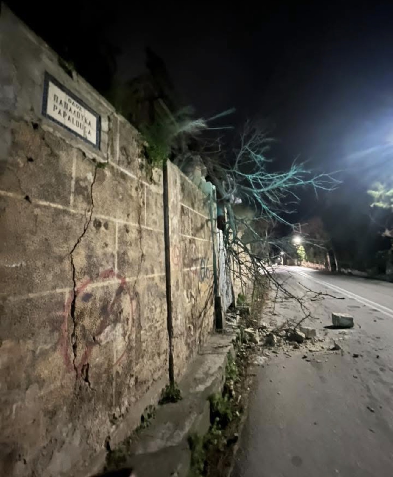 Συγκεκριμένα, ισχυρές ριπές ανέμου προκάλεσαν την εκρίζωση μεγάλου δέντρου, το οποίο κατά την πτώση του οδήγησε στην κατάρρευση παρακείμενου τοιχίου. Στο σημείο επιχειρούν από την πρώτη στιγμή συνεργεία του Δήμου Ρόδου και της Πολιτικής Προστασίας για την αποκατάσταση των ζημιών.