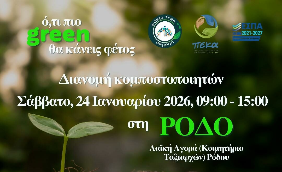 Η δράση θα πραγματοποιηθεί το Σάββατο 24 Ιανουαρίου 2026, από τις 09:00 έως τις 15:00, στην Λαϊκή Αγορά (Κοιμητήριο Ταξιαρχών) Ρόδου.