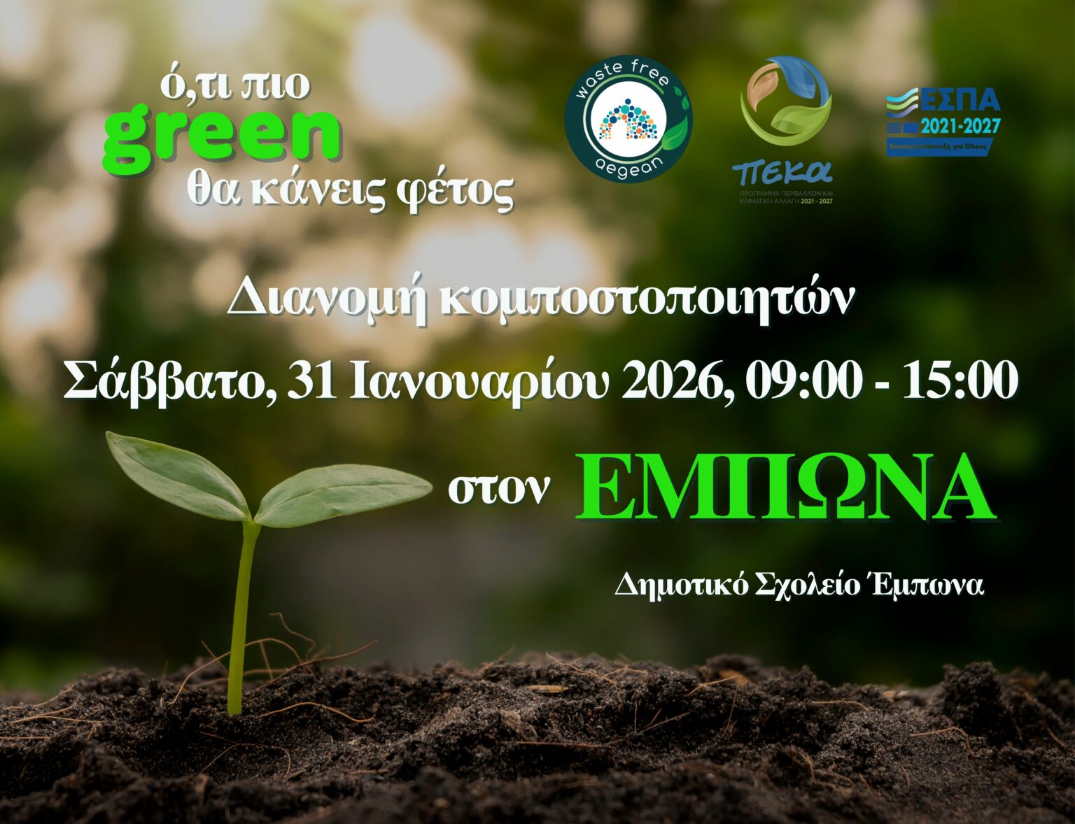 Στο πλαίσιο αυτό, υλοποιεί εκ νέου δράση διανομής κομποστοποιητών, προσφέροντας στους πολίτες ένα απλό εργαλείο για τη μείωση των οικιακών απορριμμάτων και την υιοθέτηση πιο βιώσιμων συνηθειών.