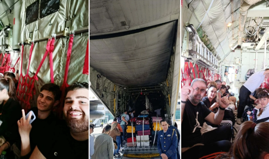 Από το C-130 που προσγειώθηκε στο στρατιωτικό αεροδρόμιο της Ελευσίνας από το Άμπου Ντάμπι βγήκαν οι 91 Έλληνες που που είχαν εγκλωβιστεί στην περιοχή, λόγω του συνεχιζόμενου πολέμου στην Μέση Ανατολή. Οι επαναπατρισμένοι Έλληνες βγήκαν από το αεροσκάφος και επρόκειτο να μεταφερθούν με πούλμαν για αποβίβαση στην Ακαδημίας 1, στο κέντρο της Αθήνας. Μάλιστα, πριν την άφιξή τους μίλησαν συγγενείς που περίμεναν τους δικούς τους ανθρώπους. Γυναίκα, εξάλλου, εκφράστηκε με ιδιαιτέρως κολακευτικά λόγια για τον πρέσβη της Ελλάδας στα Ηνωμένα Αραβικά Εμιράτα, Στέλιο Γαβριήλ, και τον τρόπο που διαχειρίστηκε την αγωνία των συγγενών στην Ελλάδα, αλλά και τη διαμονή των Ελλήνων στο Άμπου Ντάμπι.